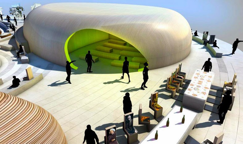 gigantesco: um museu do vinho na forma de um decanter com 55 m de altura e 14.000 m2 de área, com 19